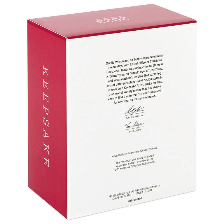 - Key Features: Move the handle on the back of the ornament to see the simple nutcracker motion. Limited quantity, first available at the 2023 Keepsake Ornament Debut event. Coordinating 2023 Noble Nutcracker ornament sold separately. Not eligible for Keepsake Wish List.