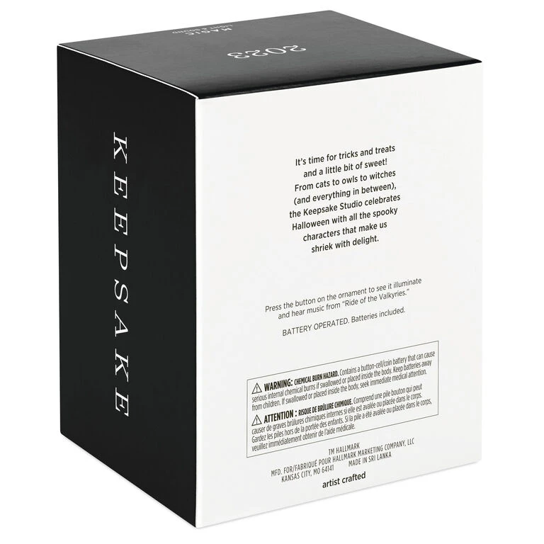 - Key Features: Press the button on the Magic Light and Sound ornament to see it illuminate and hear music from “Ride of the Valkyries.”